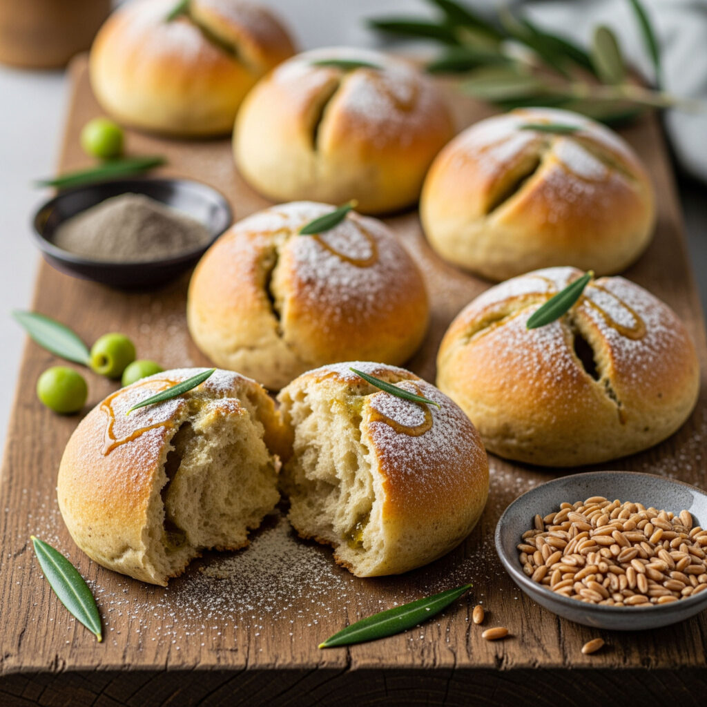 Vegan Sweet Buns with Spelt flour and Olive flour